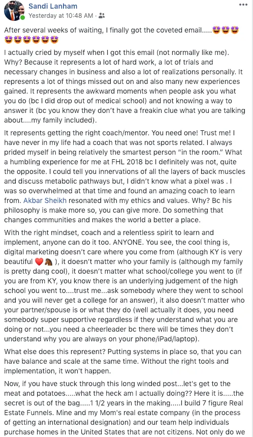 "Syed helped me sell 11 homes in my first 10 months of getting licensed. He helped me skip all the trials and errors and get straight to producing deals"